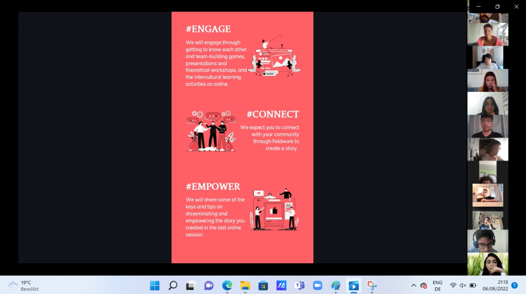 As planned, the project started on 06 June 2022 at 18:00 on Zoom with the participation of 24 young people from Turkey, Greece, Italy and Azerbaijan.