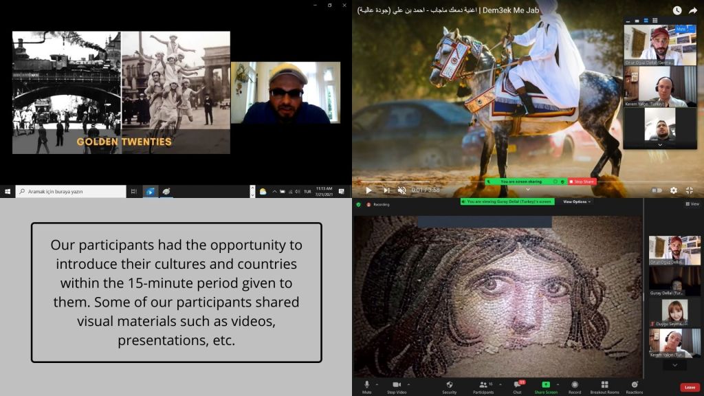 The project boasts a rich lineup of activities that took place from May 21 to May 28, 2021, with 32 participants from 14 countries, including Germany, Turkey, Italy, Greece, Spain, Portugal, Brazil, Egypt, Palestine, Azerbaijan, India, Romania, Lithuania, and Bulgaria. The online venue offered a safe and accessible space for participants to explore different cultures and learn from each other.
